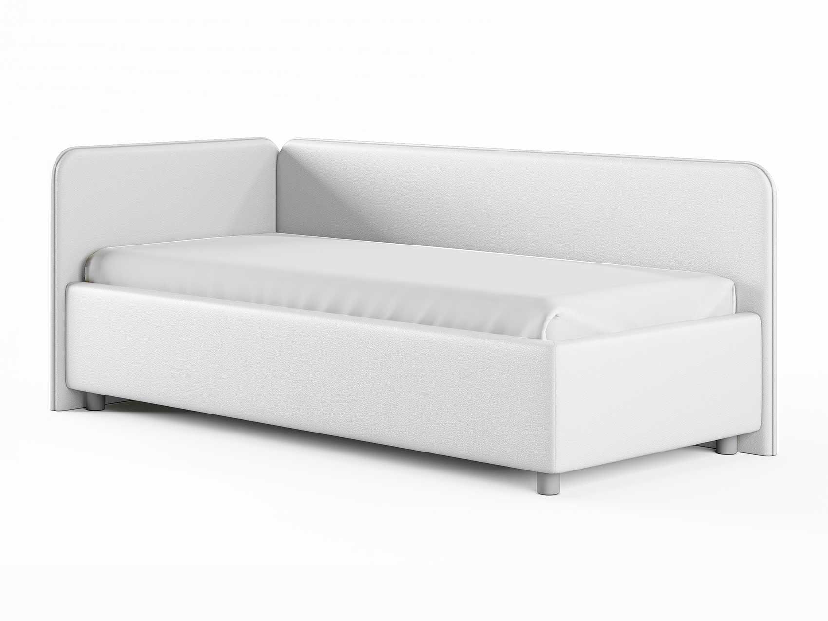 Односпальная кровать в современном стиле. Кровать-софа с одной боковой спинкой. Идеально подходит для квартир с небольшой площадью, детских и подростковых спален, гостевых комнат. Боковую спинку кровати можно изготовить на выбор на правую или левую сторону. Модель изготовлена из ДСП. При необходимости, кровать можно укомплектовать подъемным механизмом с бельевым ящиком.