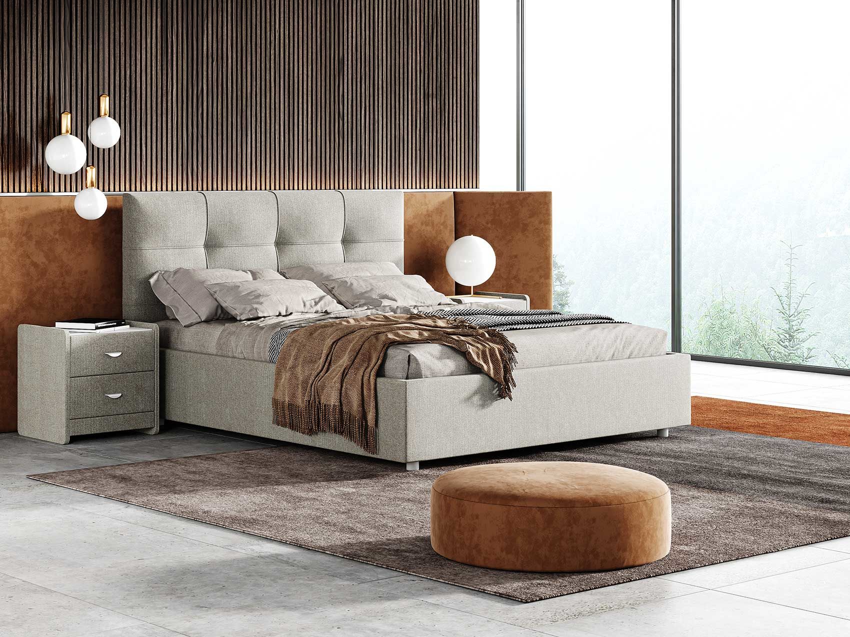 Кровать комплектуется металлическим основанием и подъемным механизмом со вместительным бельевым ящиком. Дно бельевого ящика легко сдвигается для обеспечения уборки под кроватью.