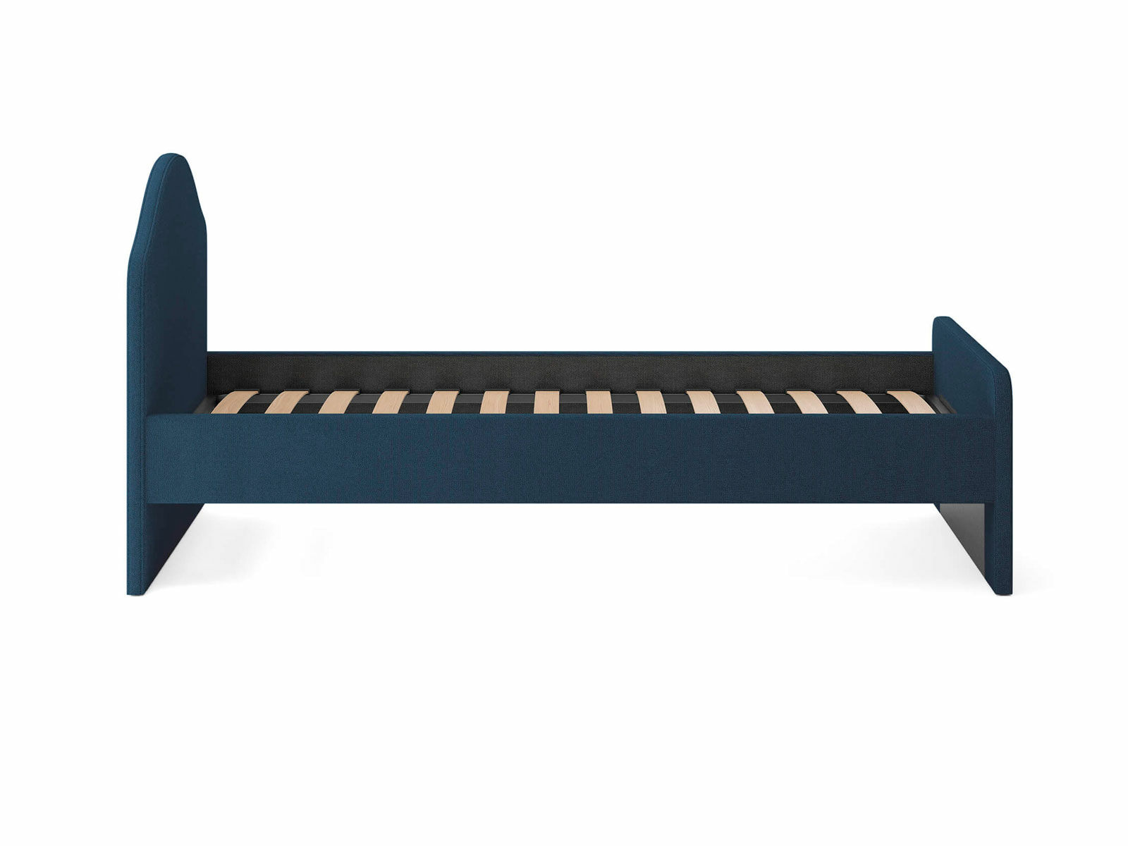 Мягкое изголовье с изгибом, плавные линии изножья, узкие царги делают кровать запоминающейся и уютной. Увеличенное расстояние до царг способствует легкой уборке под кроватью роботом – пылесосом, а также позволяет дополнительно приобрести выкатную тумбу или ящики для хранения вещей.
