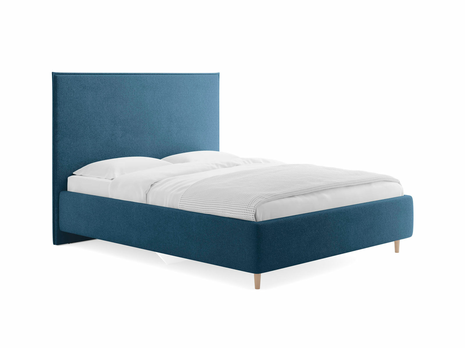 Кровать Eveline для современных интерьеров в скандинавском стиле. Выглядит эффектно благодаря мягкому высокому изголовью с декоративным кантом по периметру и опорам из натурального дерева. Модель будет смотреться выигрышно и актуально в интерьере, делая спальню уютнее, настраивая на отдых.