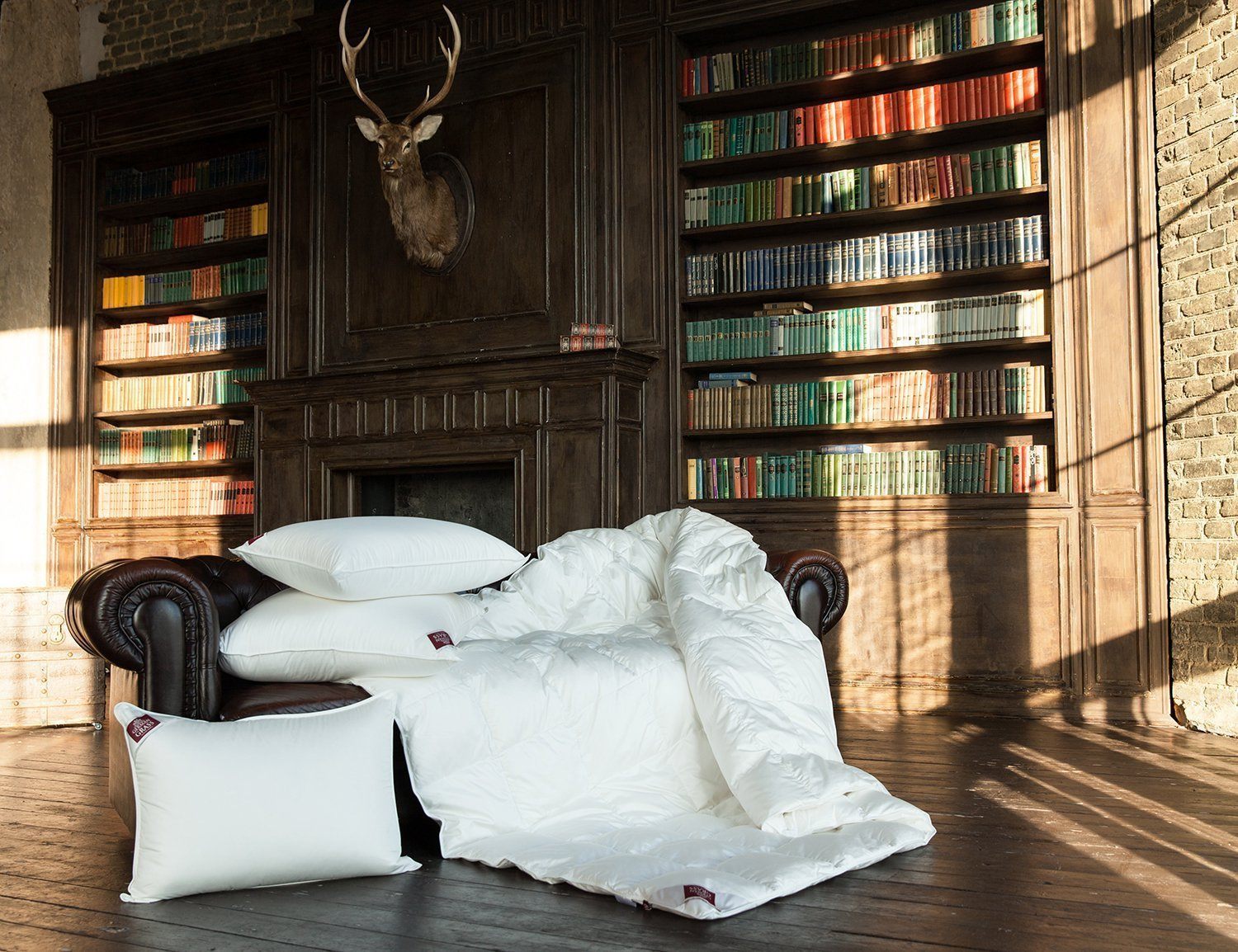 Благородный блеск гладкого сатина цвета экрю в сочетании с превосходным гусиным пухом превращают постельные принадлежности в настоящий предмет роскоши. Очищенный отборный гусиный пух категории “Экстра” с высоким коэффициентом упругости (Fill Power 850 ед) придает подушкам превосходные ортопедические свойства, мягко разгружая и поддерживая шею во время сна. Кассетные одеяла ручной работы, состоящие из отдельных box-кассет, распределяют пух равномерно и делают одеяла легкими и воздушными, но невероятно теплыми. Стирка при температуре до 30°С.