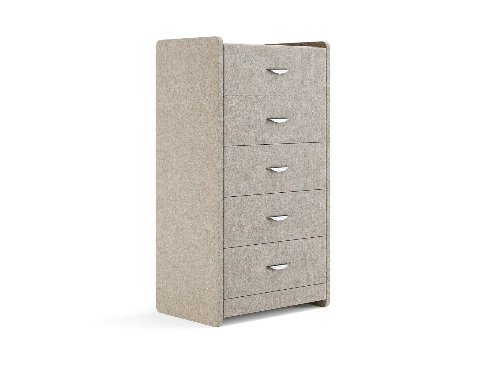 Комод с 5 ящиками сдержанного дизайна дополнит любой интерьер и сделает его более функциональным. Каркас комода и фасад ящиков покрыты обивочным материалом и выполняется в 43 вариантах цветового исполнения. Для удобства использования и продления срока эксплуатации, рекомендуется использовать стеклянную накладку. Накладка используется в качестве столешницы для тумбы и защищает ее от повреждений и загрязнений. Стеклянная столешница заказывается дополнительно.