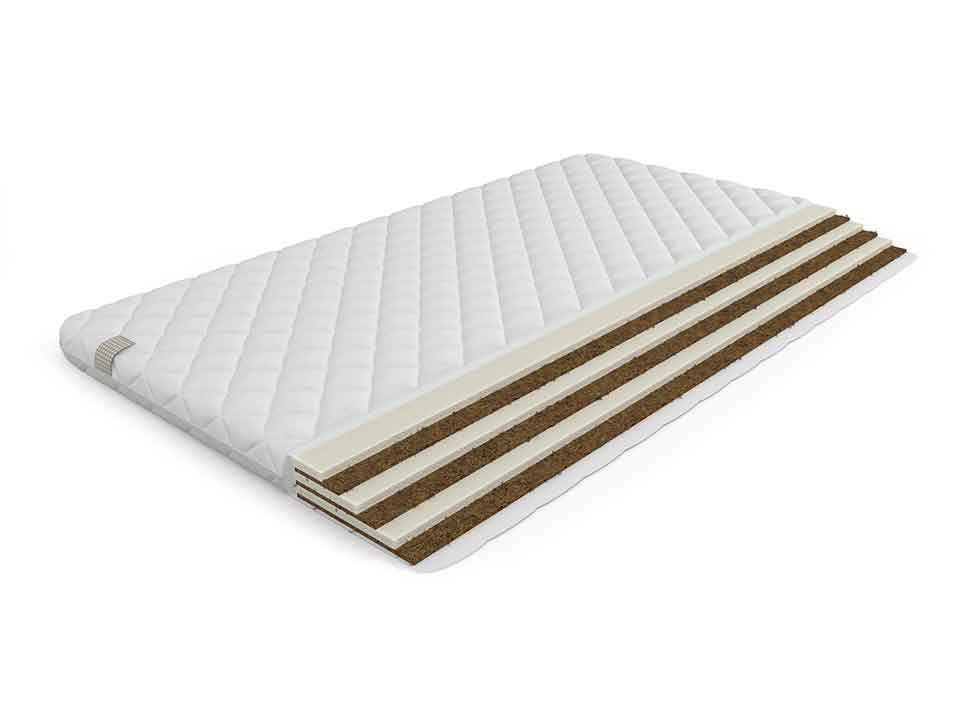 Это беспружинный матрас с чередующимися 2-х сантиметровыми слоями комфорта латексированного кокоса и пенополиуретана. Отлично выравнивает любую поверхность.