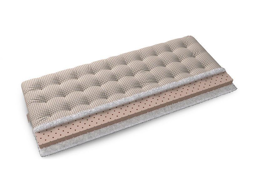 Самый популярный настил. Рулонный латекс отличный и долговечный, хорошо распределяет нагрузку, имеет ортопедический эффект. За счёт упругости латекса давление на сосуды и мышцы во время сна оказывается минимальным. Латекс – уникальный материал с точки зрения индустрии сна. Он прекрасно используется в качестве самостоятельной основы.