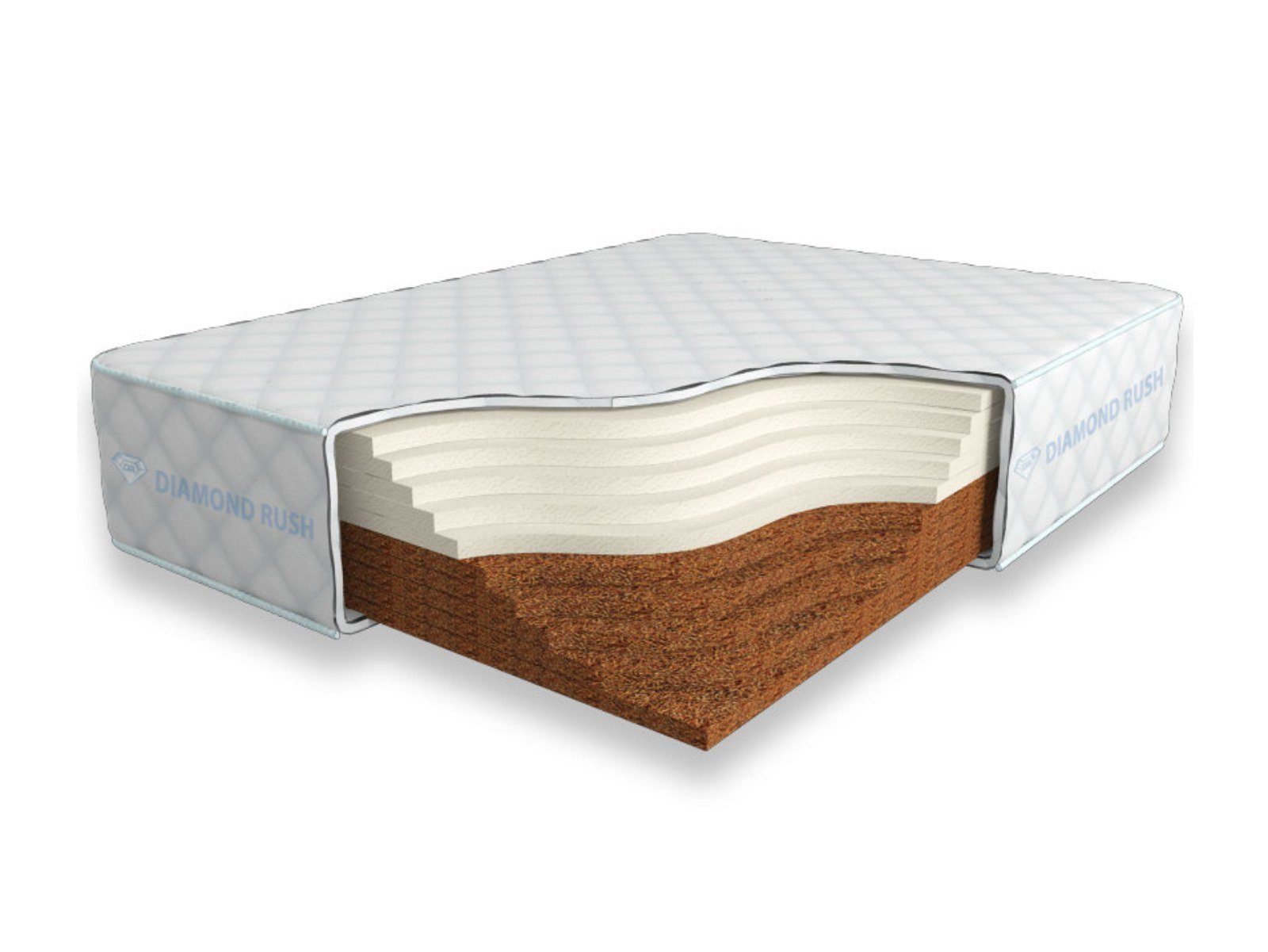 Матрас Diamond Rush Cocos Contrast 30 SD является беспружинным, т.е. не имеет в своей основе пружинного блока. Особенность этой модели в том, что она сочетает в себе одновременно среднежесткий и максимально жесткий матрасы. С одной стороны идет один или несколько слоев латексированной кокосовой койры (3см), с другой - искусственного латекса (3см).
