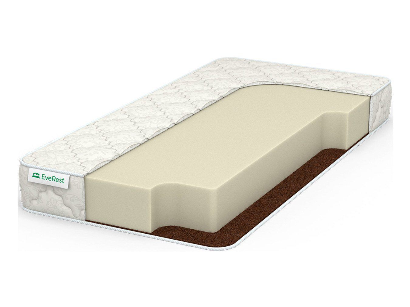 Внутри матрас вмещает два практичных слоя: искусственный латекс и койру кокоса.