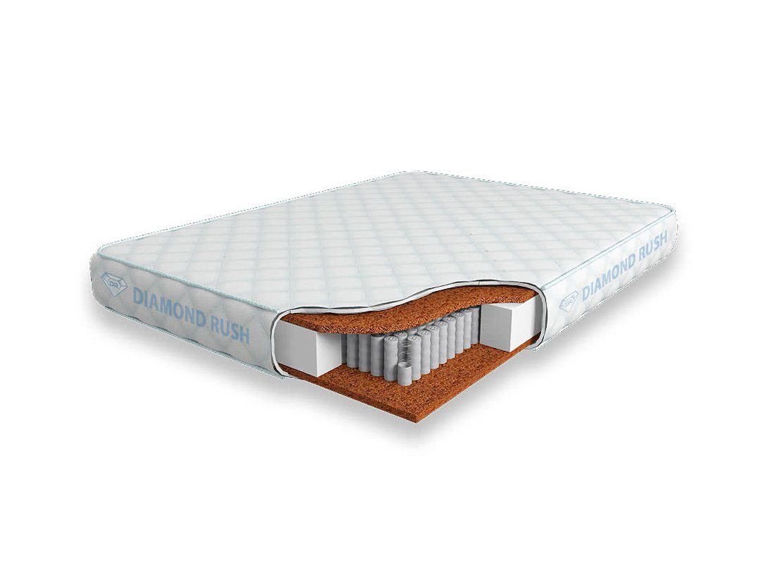 Матрас Diamond Rush Full Cocos-2 1440DR имеет в своей основе независимый пружинный блок 1440, состоящий из пружин диаметром 3-4 см. В качестве настилочных слоев поверх пружинного блока используются листы толщиной 2см латексированной кокосовой койры. Это один из самых жестких материалов, однако он позволяет в полной мере ощутить на себе ортопедический эффект от пружинного блока.