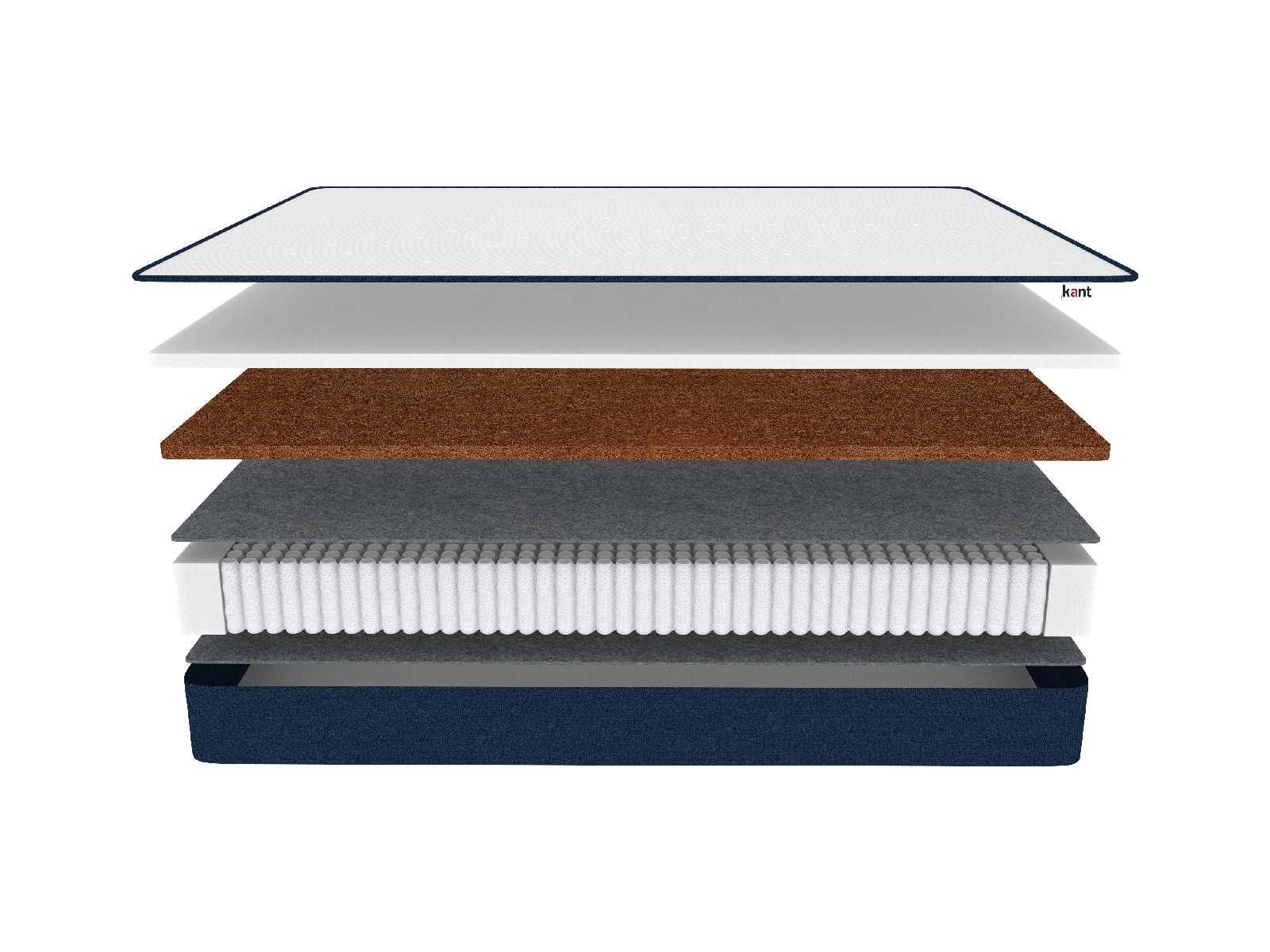 Спальная поверхность матраса реализована при помощи тандема из койры кокоса и фирменной пены Kant foam. Жёсткая койра усиливает правильную поддержку тела, а пена убирает излишнюю твёрдость и добавляет комфорта рабочей поверхности изделия.