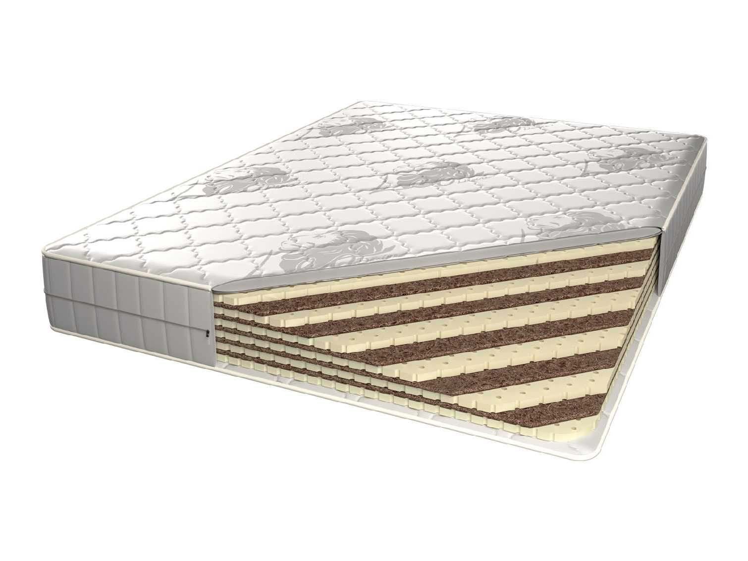 Жёсткий беспружинный матрас София, уникальная конструкция которого состоит из 11 чередующихся слоев из полностью экологически и современных наполнителей – латекса и кокосовой койры.