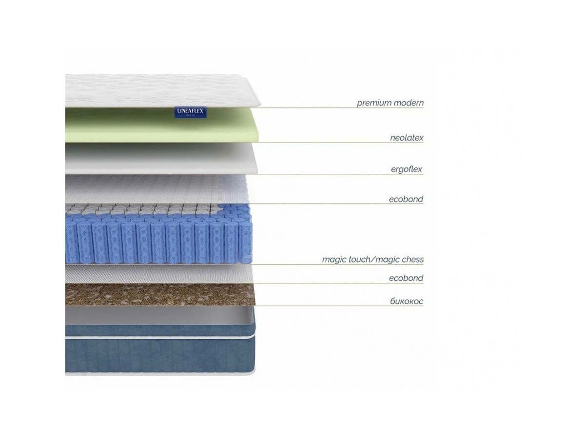 Magic Touch – инновационный пружинный блок с пружиной Soft Touch c микромассажным равномерным распределением нагрузки. Усилен по периметру пружинами Magic Chess (500 пружин на спальное место), армированный по системе Ecobond.