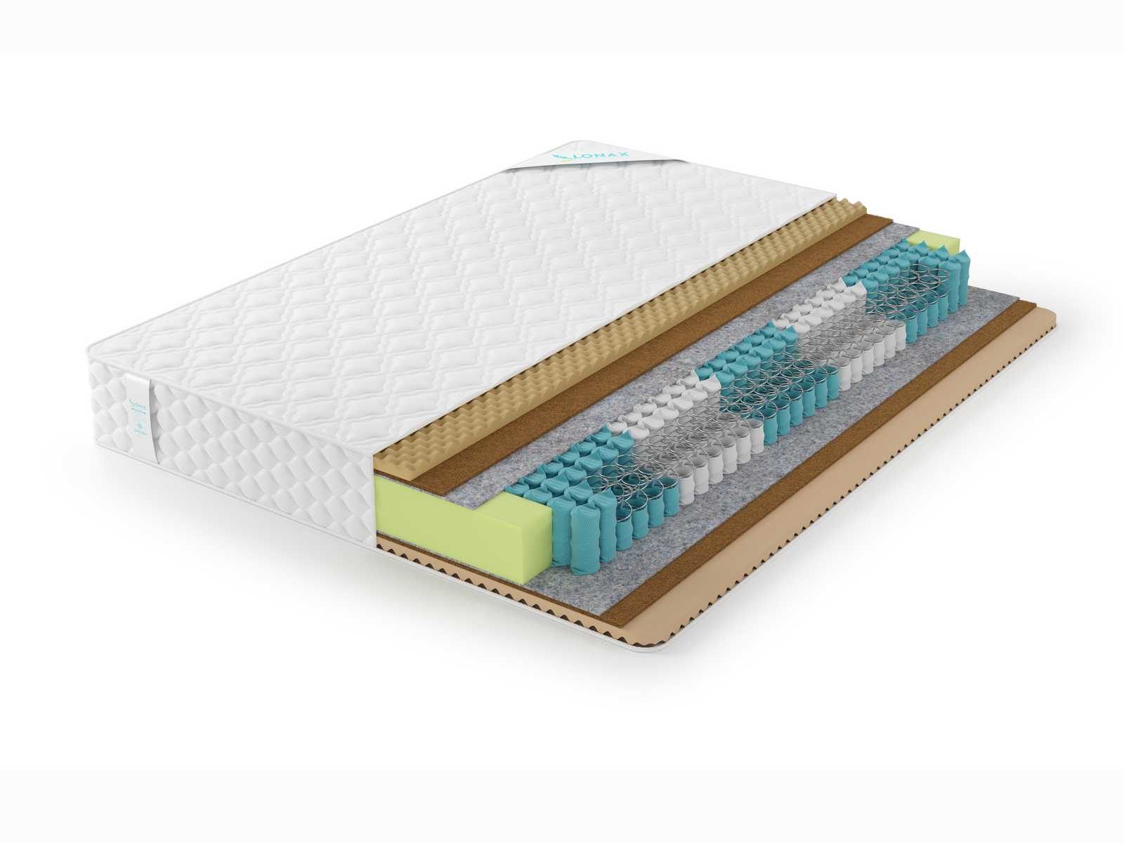 Данная модель обеспечена продуманной комбинацией наполнителей. Здесь расположилось кокосовое полотно, на которое поверх устанавливается мягкая пена Мемори. Такой союз с одной стороны даёт поверхности высокое удобство и адаптивные качества, а с другой – обеспечивает качественный уровень поддержки для всех отделов позвоночника.