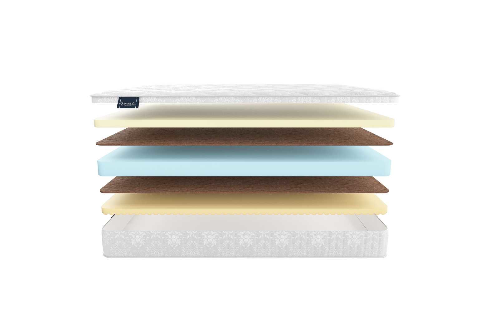 По сторонам от сердцевины устанавливаются кокосовые прослойки. Они ещё больше увеличивают плотность и жёсткость. Материал отвечает за гармоничную ортопедическую поддержку спины с любой из сторон матраса.