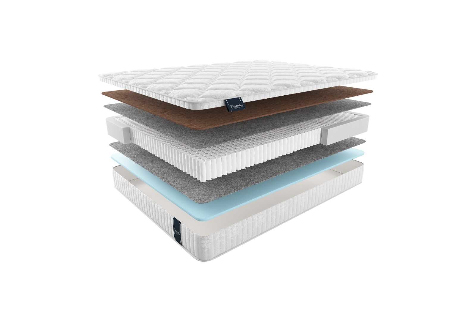 Основным поддерживающим элементом матраса выступает блок пружин, содержащий как минимум 530 спиралей на квадратный метр. Такое число считается увеличенным, поэтому блок относится к усиленным структурам. Благодаря его присутствию матрас выдерживает нагрузку до 120 кг на спальное место. Важно отметить, что все пружины в блоке – это автономные единицы, которые точечно подстраивают поверхность под тело человека.