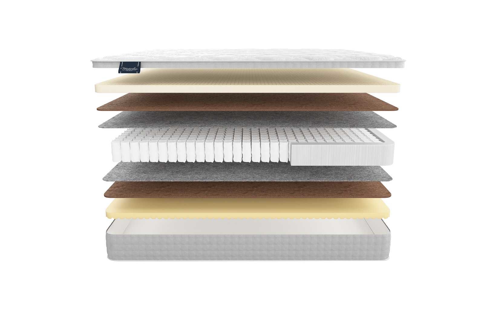 В состав матраса входят только материалы премиального качества, которые прошли тщательный мониторинг и отбор. Модель построена на независимом блоке пружин, который считается усиленным за счёт большого числа поддерживающих элементов.