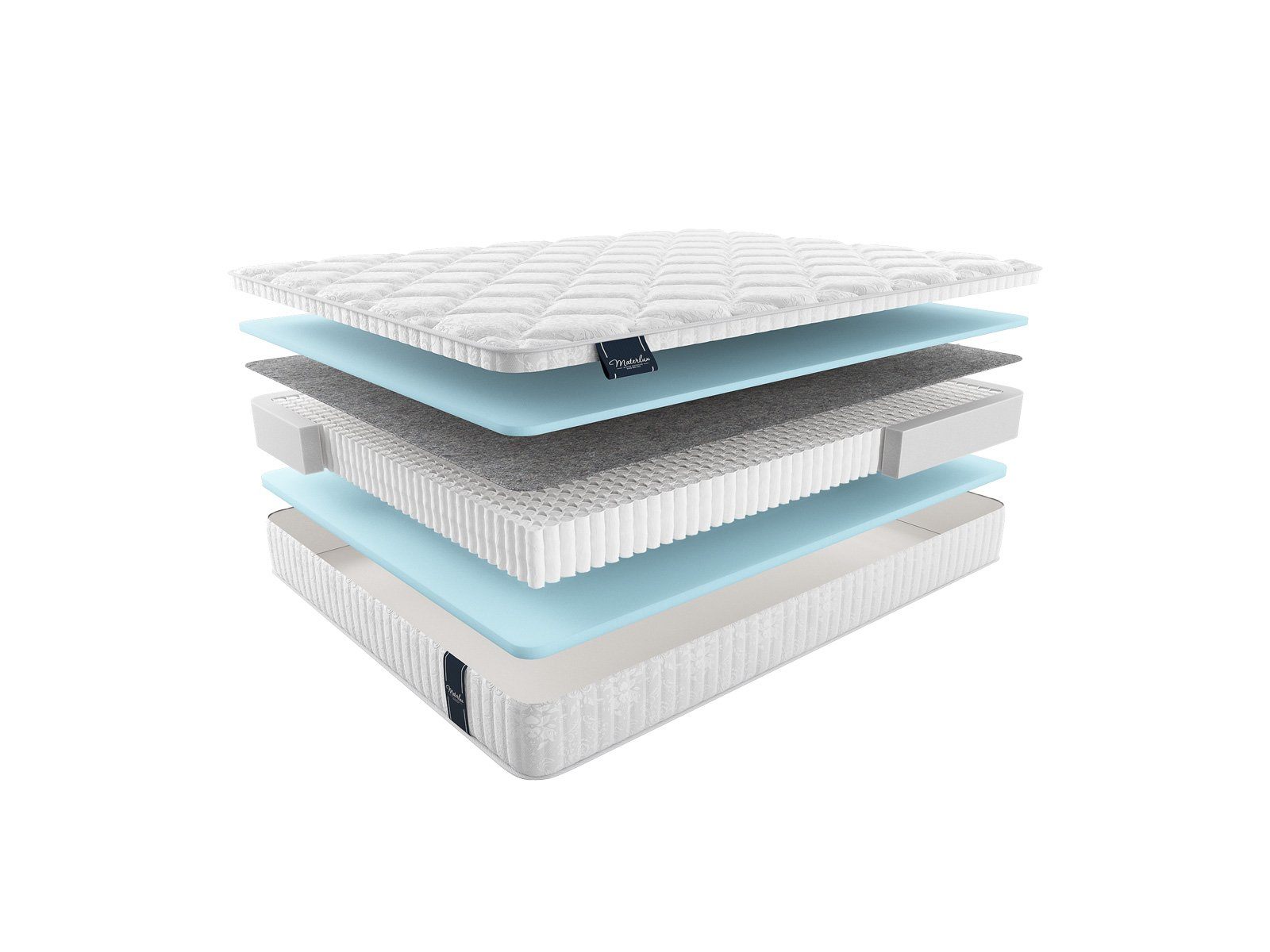 Матрас снабжен независимым пружинным блоком «Мультипакет» (1040 пружин на спальное место), который создает анатомический и ортопедический эффект.