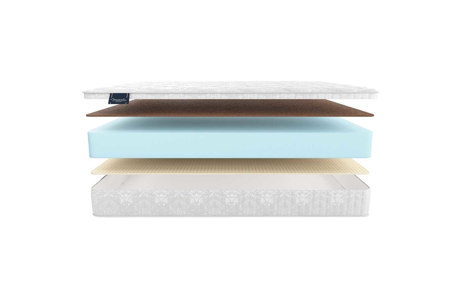 Что касается наполнения матраса, то здесь установлены три различных слоя материалов. Базовым центральным блоком выступает пена Natural Foam. Она занимает самый большой объём и забирает на себя функцию несущей панели, равномерно распределяющей нагрузку по всей поверхности матраса. Пена эластична и хорошо повторяет изгибы фигуры, чем обеспечивает высокий комфорт спальному месту.