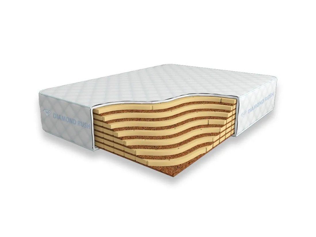 Матрас Diamond Rush Mix Cocos 28 DR является беспружинным, т.е. не имеет в своей основе пружинного блока. В его состав входят чередования слоев латексированной кокосовой койры (1см) и натурального латекса с перфорацией (3см). Эта модель имеет разные по жесткости стороны.