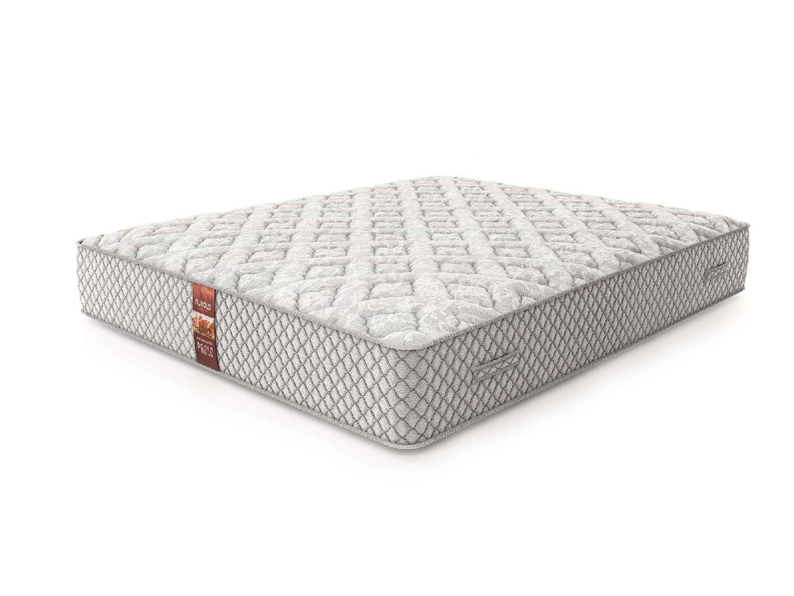 Пласти матраса сшиты из жаккарда. Ткань простёгивается на слоях холлкона 300 гр., ППУ 1 см и спанбонде, что позволяет усилить комфортные качества. Бурлет модели оформляется при помощи жаккарда серого оттенка, простроченного на ППУ.