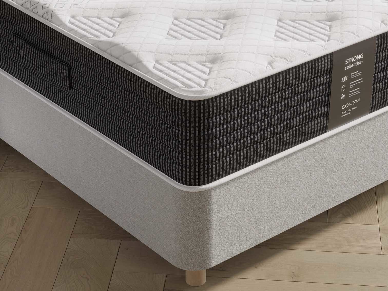 Пружинный блок MultiPocket. Использование большого количества пружин небольшого диаметра повышает точечную эластичность, то есть способность повторять форму тела, обеспечивают правильную поддержку позвоночника.
