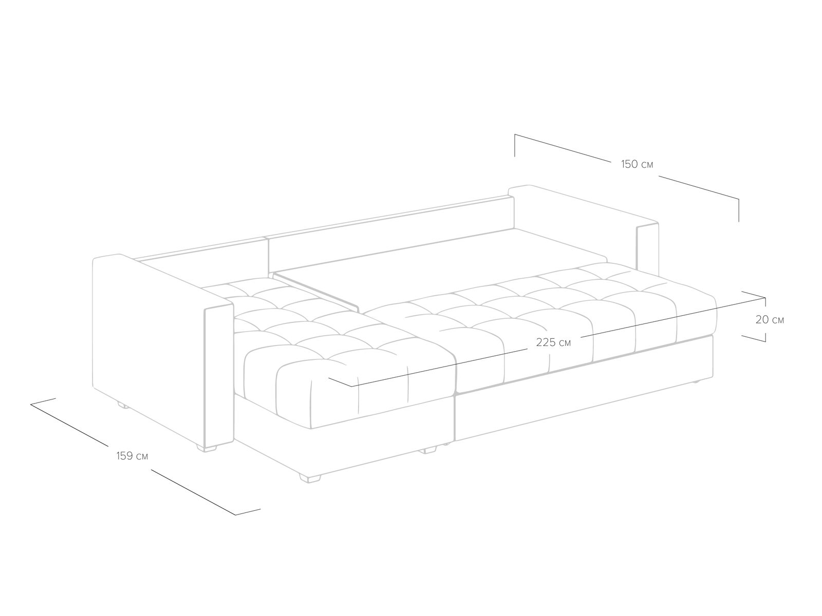 Диван Megapolis угловой - подходит для полноценного сна. Анатомический матрас средней жесткости с независимым пружинным блоком и пеной повышенной жёсткости обеспечивают возможность правильного положения и расслабления во сне. Высота матраса 20 см.