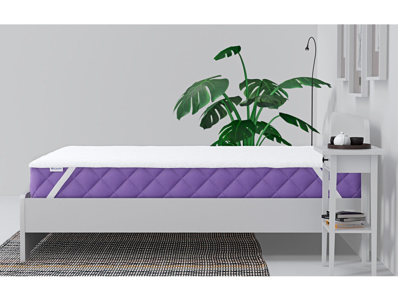 Наматрасник выполнен из нежной и мягкой махровой ткани. Материал обеспечивает комфортные касания и передаёт спальной поверхности дополнительный уют и мягкость.