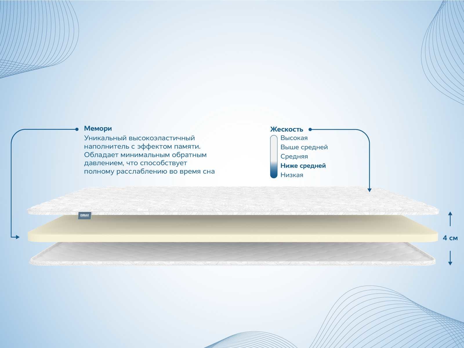 Мягкий ортопедический наматрасник Димакс Мемори с эффектом памяти — это топпер, предназначенный для смягчения и максимальной адаптации спальной поверхности под человека.