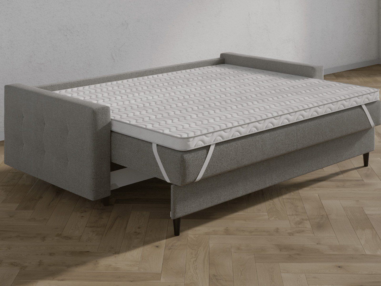 Топпер предназначенный для матрасов и диванов. Пена с эффектом памяти повторяет контуры тела и создаёт комфортную поверхность для отдыха, а высокоэластичная пена с обратной стороны обеспечивает упругую поддержку позвоночника. Подходит для аллергиков. Крепление осуществляется с помощью резинок по четырём углам.