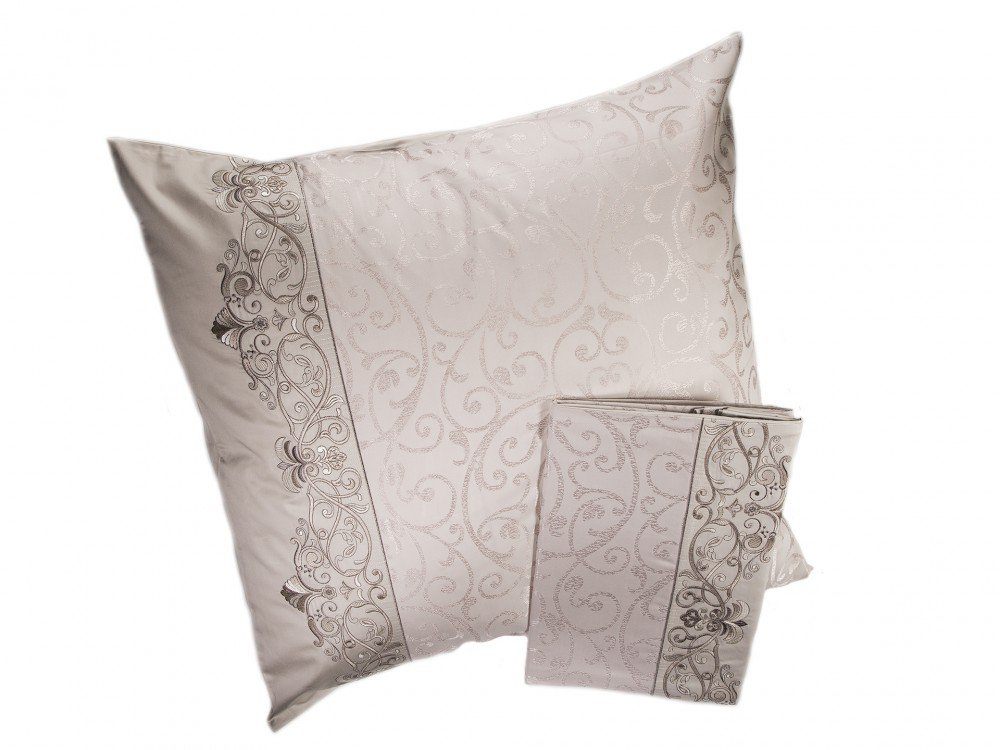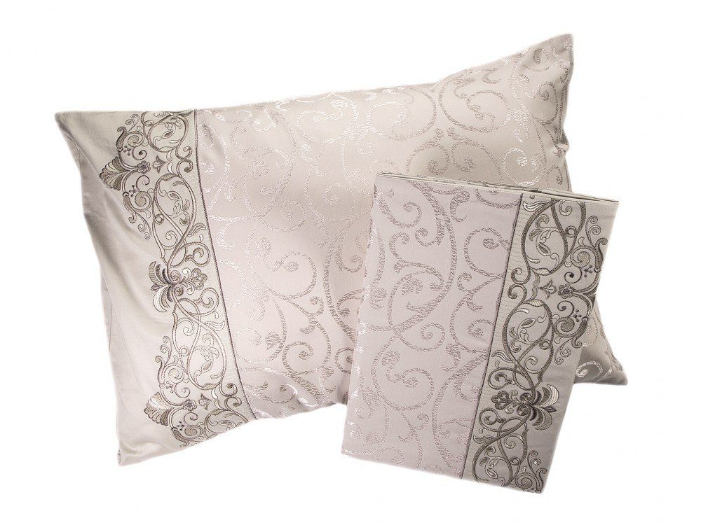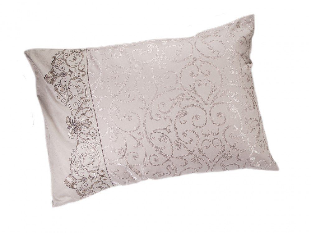 Комплект наволочек 50х70 см 2 шт. или 70х70 см 2 шт. серебристо-серого цвета. Верх наволочек из жаккардового люкс-сатина (55% вискоза, 45% хлопок), оборотная сторона люкс-сатин (100% хлопок). Отделка - шикарная вышивка. Наволочки закрываются на клапан. В комплекте 2 наволочки; упакованы в пакет из пвх с фирменным логотипом.