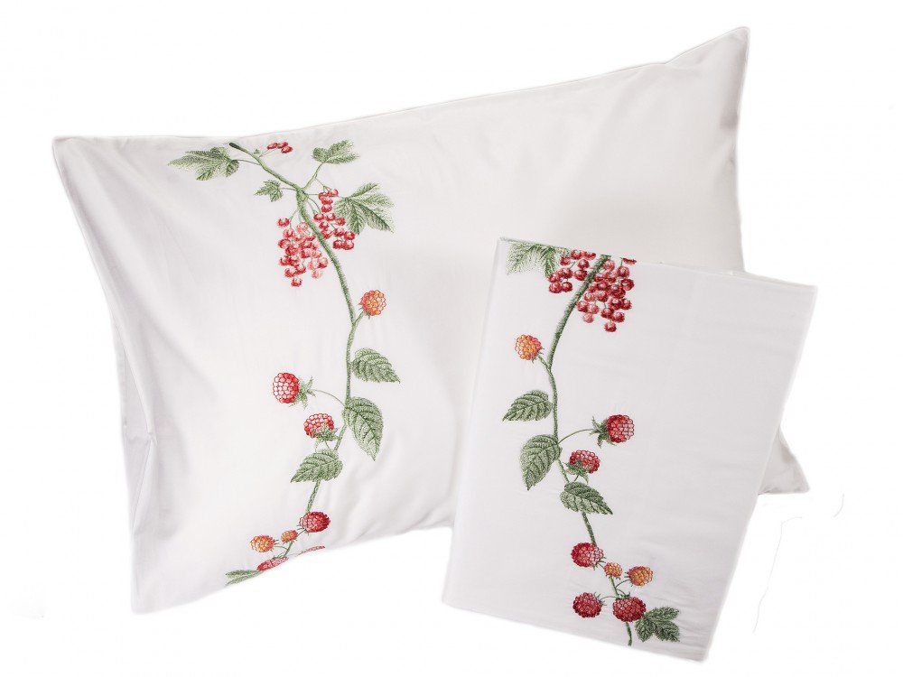 Комплект наволочек 50х70 см 2 шт. или 70х70 см 2 шт. выполнен из белоснежного люкс-сатина (100% хлопок). Украшением служит объемная многоцветная вышивка в виде спелых лесных ягод. Наволочки закрываются на клапан. В комплекте 2 наволочки; упакованы в пакет из пвх с фирменным логотипом.