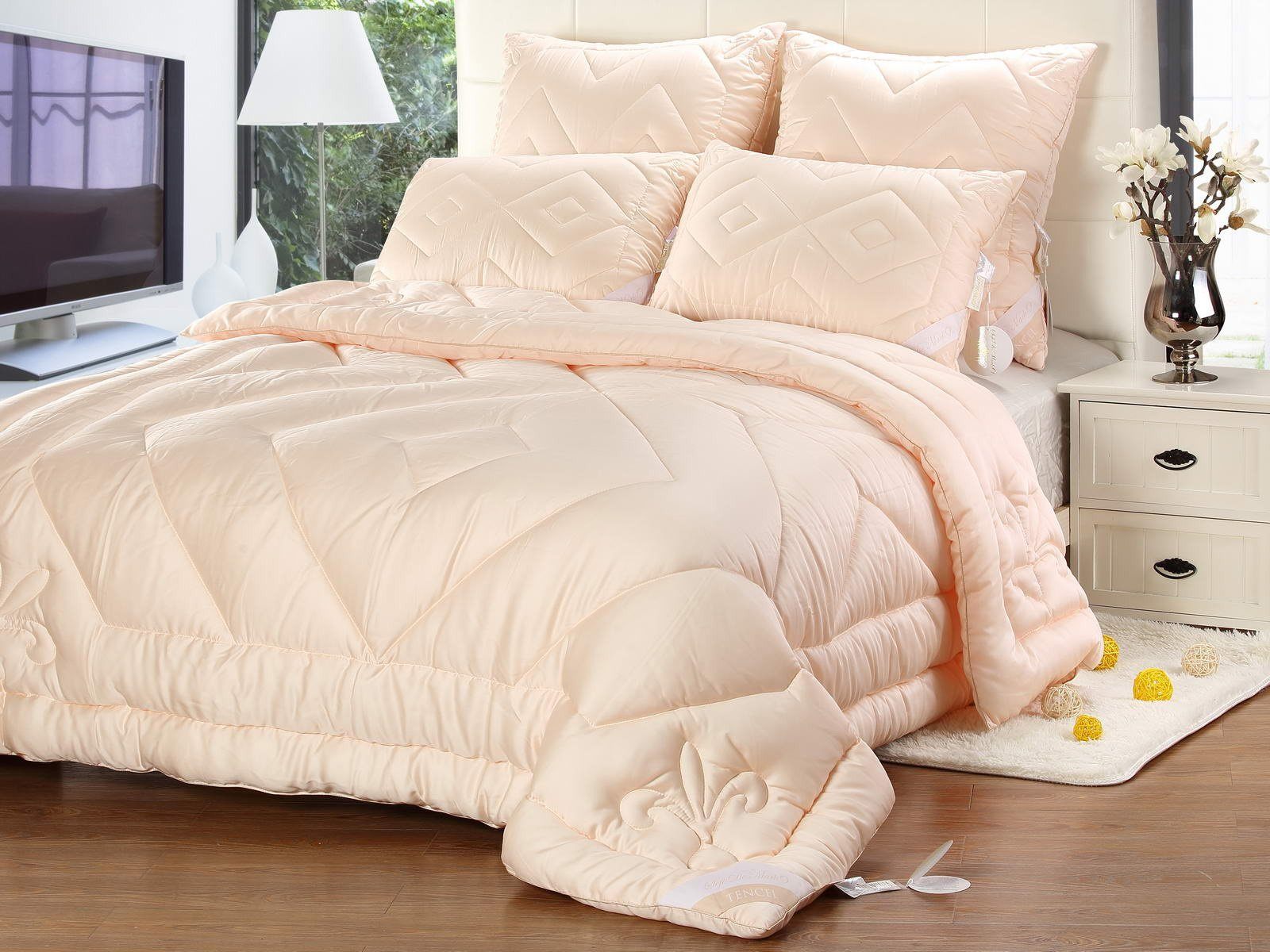 Производство ткани tencel представляет собой самое большое достижение в технологии целлюлозных волокон. Считается, что в скором времени она составит серьезную конкуренцию тканям из искусственных волокон. Она не вызывает аллергии, наполнитель хорошо поглощает влагу, обладает высокой износоустойчивостью и прочностью, хорошо сохраняет форму. Одеяло великолепно стирается, быстро высыхает и не теряет объем.