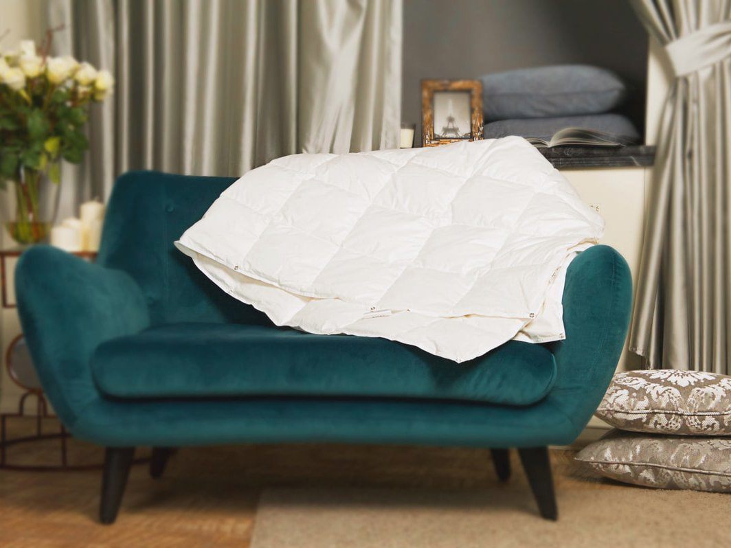 Наполнитель: новый белый пух селекционного Венгерского гуся 90%, 10% кончики пера венгерского гуся, класс I, DIN EN 12934