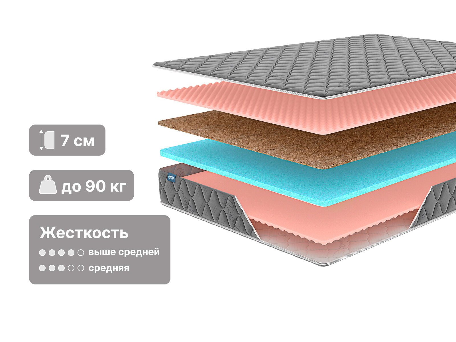 Койра кокоса – натуральный жёсткий слой с выраженной адаптивной способностью. Плита подстраивается под изгибы спины и даёт правильную поддержку не только позвоночнику, но и всему телу.