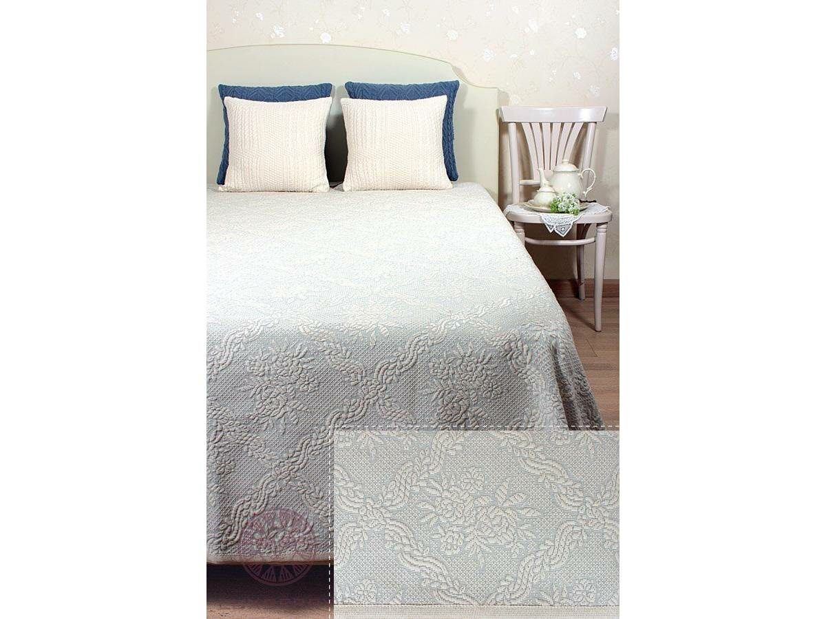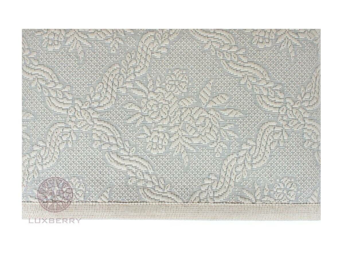Покрывало "ILIA" изготовлено из 100% хлопка, однослойное, без подкладки. Ткань плотная и прочная, практически не мнется. В основе голубой цвет, узоры и отделка края выполнены в светлом оттенке экрю. Края покрывала отделаны тесьмой.