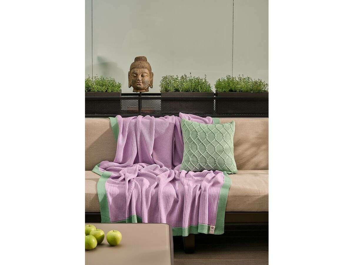 Плед имеет красивую плотную вязку, с отделочным кантом 5см.