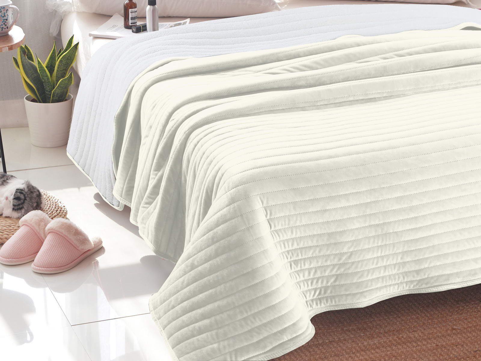 Благодаря сочетанию вискозы и хлопка такие покрывала не теряют форму при использовании и не линяют. А мягкий и шелковистый велюр поможет согреться и придаст уюта вашему дому.
