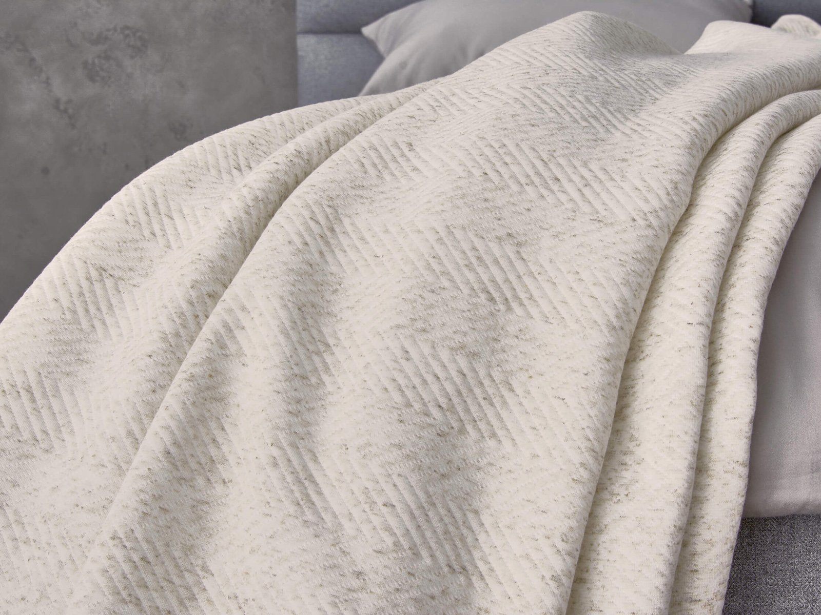 Трикотажные пледы Porto с классическим узором в виде крупного зигзага добавят уюта гостиной или спальне. Современная экологичная ткань на основе хлопка и переработанного полиэфирного волокна мягкая, долговечная и простая в уходе. Пледы единого размера подойдут для двуспальных кроватей.