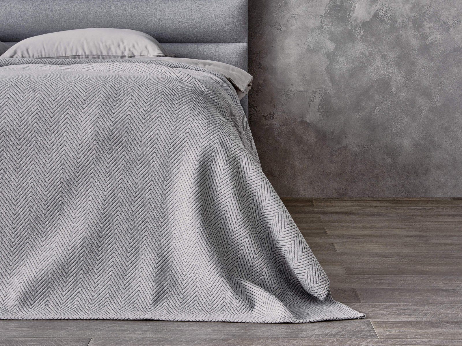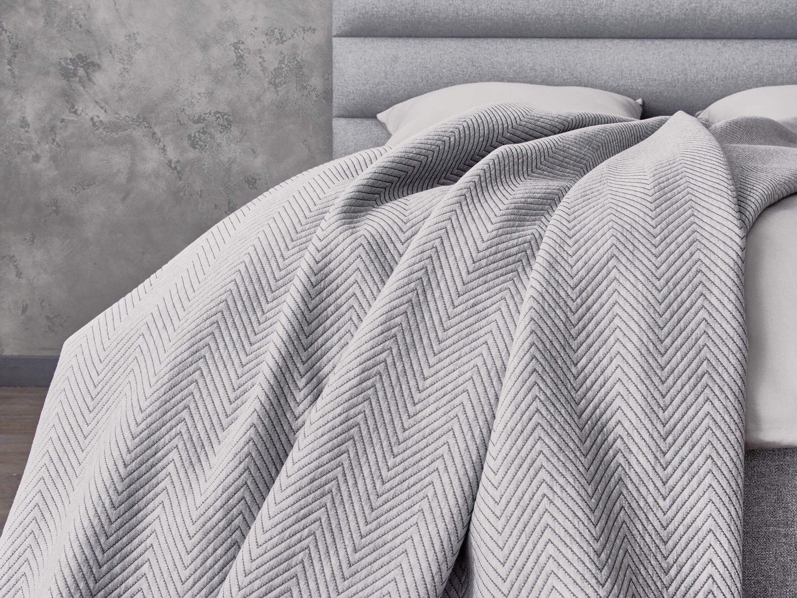 Трикотажные пледы Porto с классическим узором в виде крупного зигзага добавят уюта гостиной или спальне. Современная экологичная ткань на основе хлопка и переработанного полиэфирного волокна мягкая, долговечная и простая в уходе. Пледы единого размера подойдут для двуспальных кроватей.