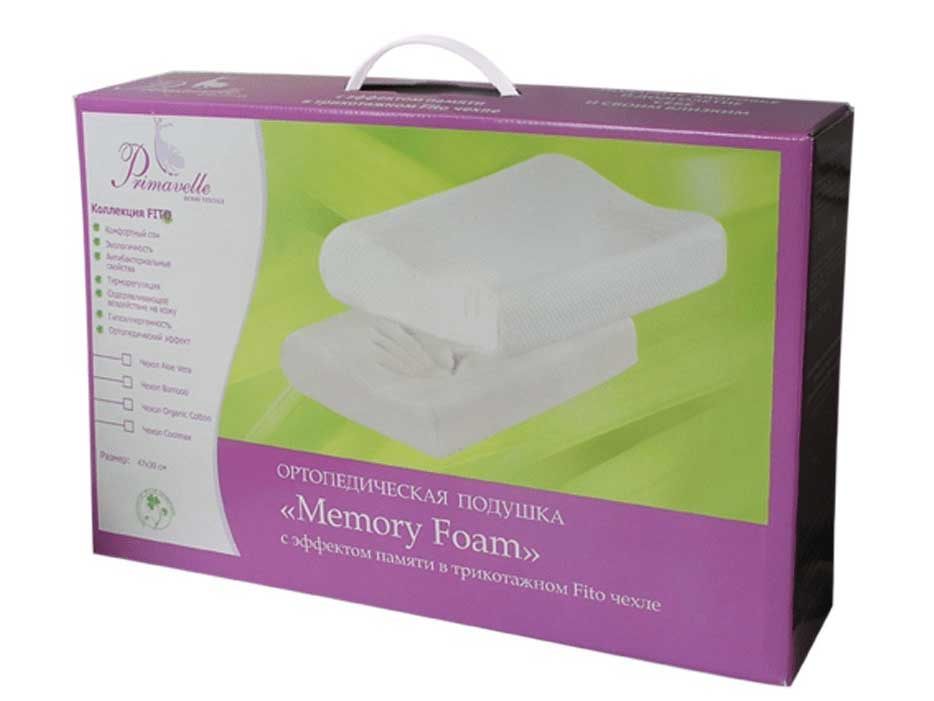 Memory Foam - "умная" подушка, способная запоминать форму. Когда человек кладет голову, под воздействием тепла и веса тела подушка принимает очертания головы и шеи. Так создается одинаковое давление во всех местах контакта головы с подушкой, сосуды не пережимаются, кровоснабжение мозга полноценное. Позвоночник находится в оптимальном расслабленном положении. Когда человек поднимает голову с такой ортопедической подушки, латекс медленно возвращается в изначальное положение. По процессе производства подушек латекс вспенивают, в результате получается пористая структура ячеек. Эта структура самовентелируется, выводит излишнее тепло. В результате, создается постоянная нейтральная температура, комфортная для головы. Подушка имеет два валика, размер и форма которых разработаны с учетом медицинских показаний. В результате, во время сна можно снять напряжение мышц шеи, что способствует снятию болевых ощущений в верхнем отделе позвоночника. В подушке не заводятся микробы-паразиты и грибки.