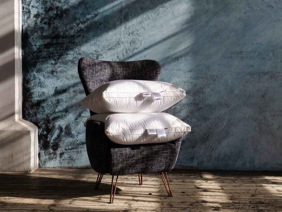 Объемная и высокая подушка Queen Down Grass с бортиком сочетает в себе великолепные немецкие ткани большой плотности и натуральный гусиный пух высшей категории качества.