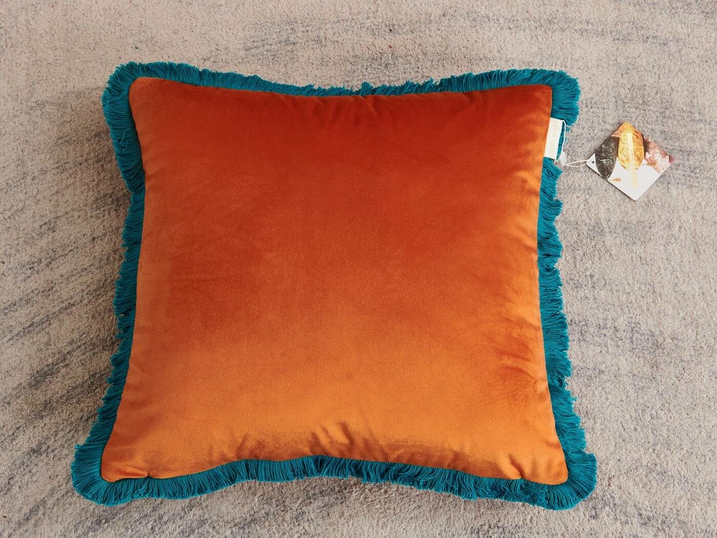 Коллекция пошита из мягкого и приятного на ощупь велюра плотностью 250г/м2. Наволочки с контрастной хлопковой бахромой добавят ярких акцентов и жизнерадостности в ваш интерьер. Большой выбор расцветок поможет расставить цветовой акцент и подчеркнет индивидуальность Вашей гостиной.
