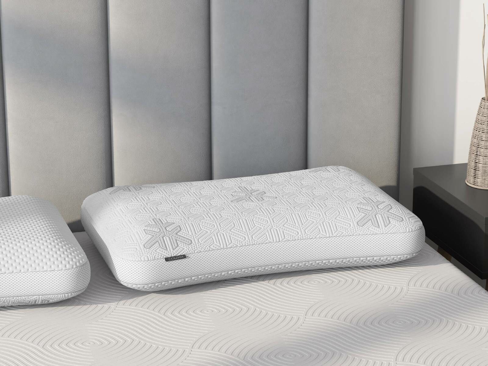 Эргономичная подушка из современного материала memory foam, который деликатно адаптируется к физиологическим особенностям, создаёт персональный комфорт, не нарушает кровообращение. С одной стороны – трикотаж с охлаждающим эффектом - поглощает избыточное тепло, дарит прохладу во время сна, а с другой – трикотаж с волокнами Tencel, которые улучшают гигиеничность и делают поверхность мягкой. 3d сетка по периметру улучшает воздухообмен.