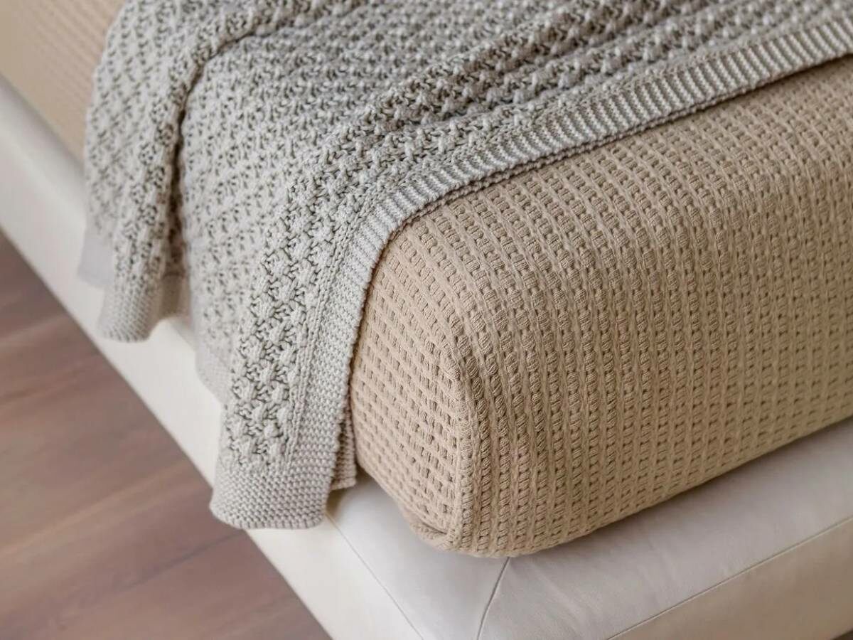 Натуральное и легкое хлопковое покрывало VEGAN с фактурой - плетенка. Произведено португальской фабрикой.