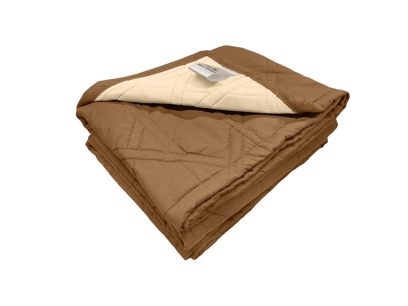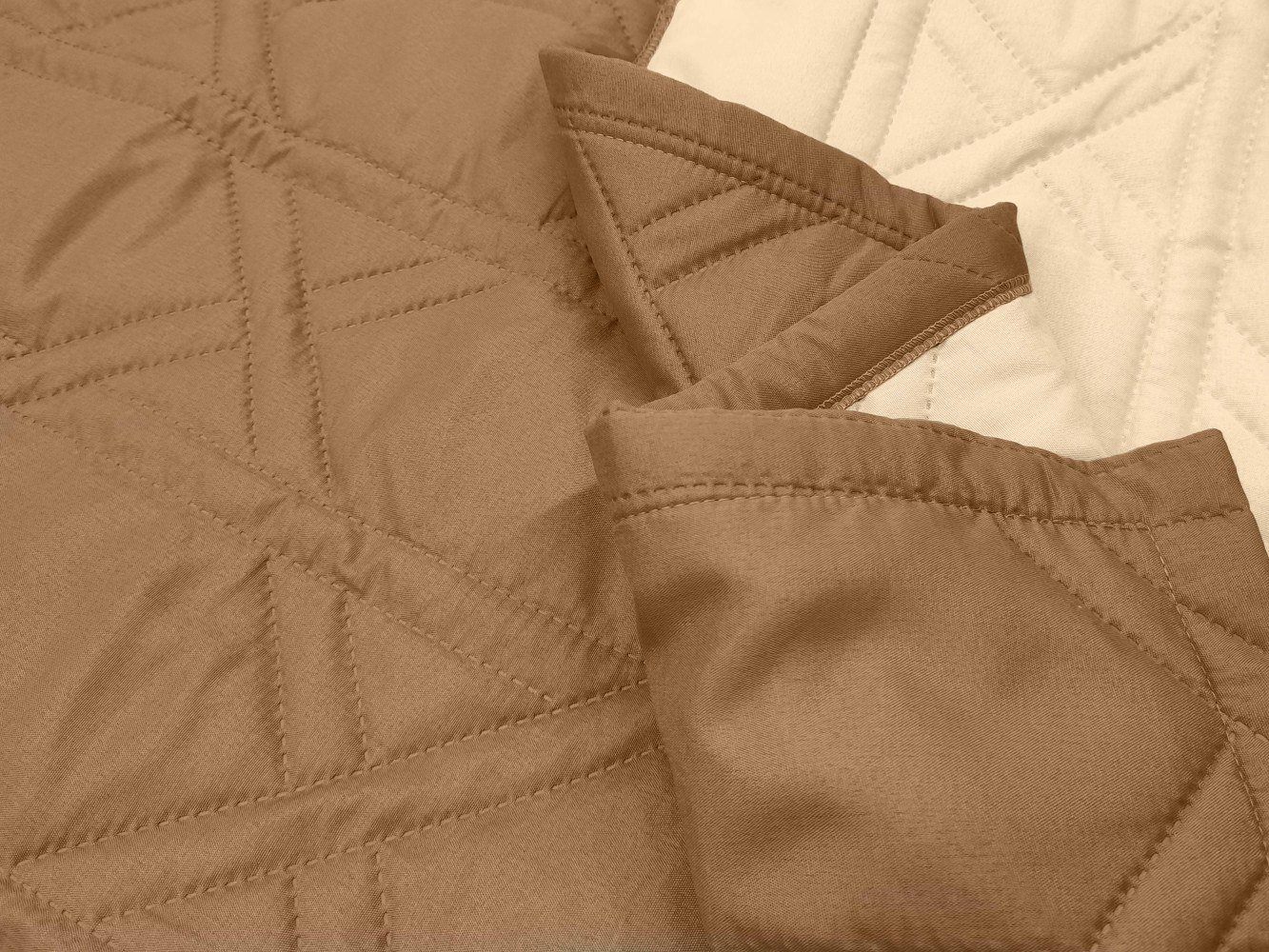 Покрывало, которое прекрасно будет смотреться как в современном лофте, так и в классическом модерне, благодаря тандему игривой геометрии и сдержанного светло-коричневого оттенка. Мягкий и природный цвет, несет в себе естественность и спокойствие. Геометрическая стежка немного разбавляет выдержанную идиллию, делая изделие интересным.