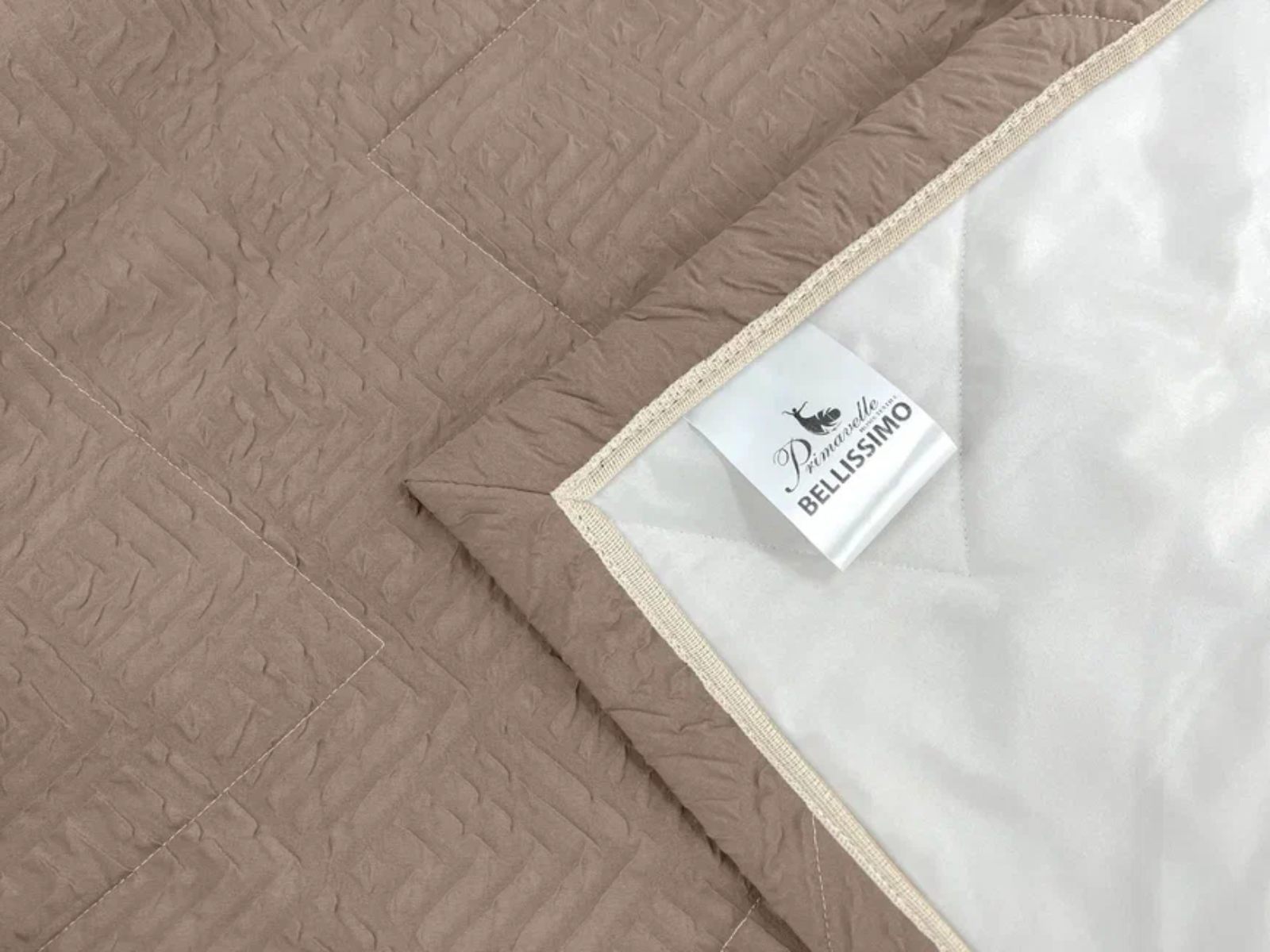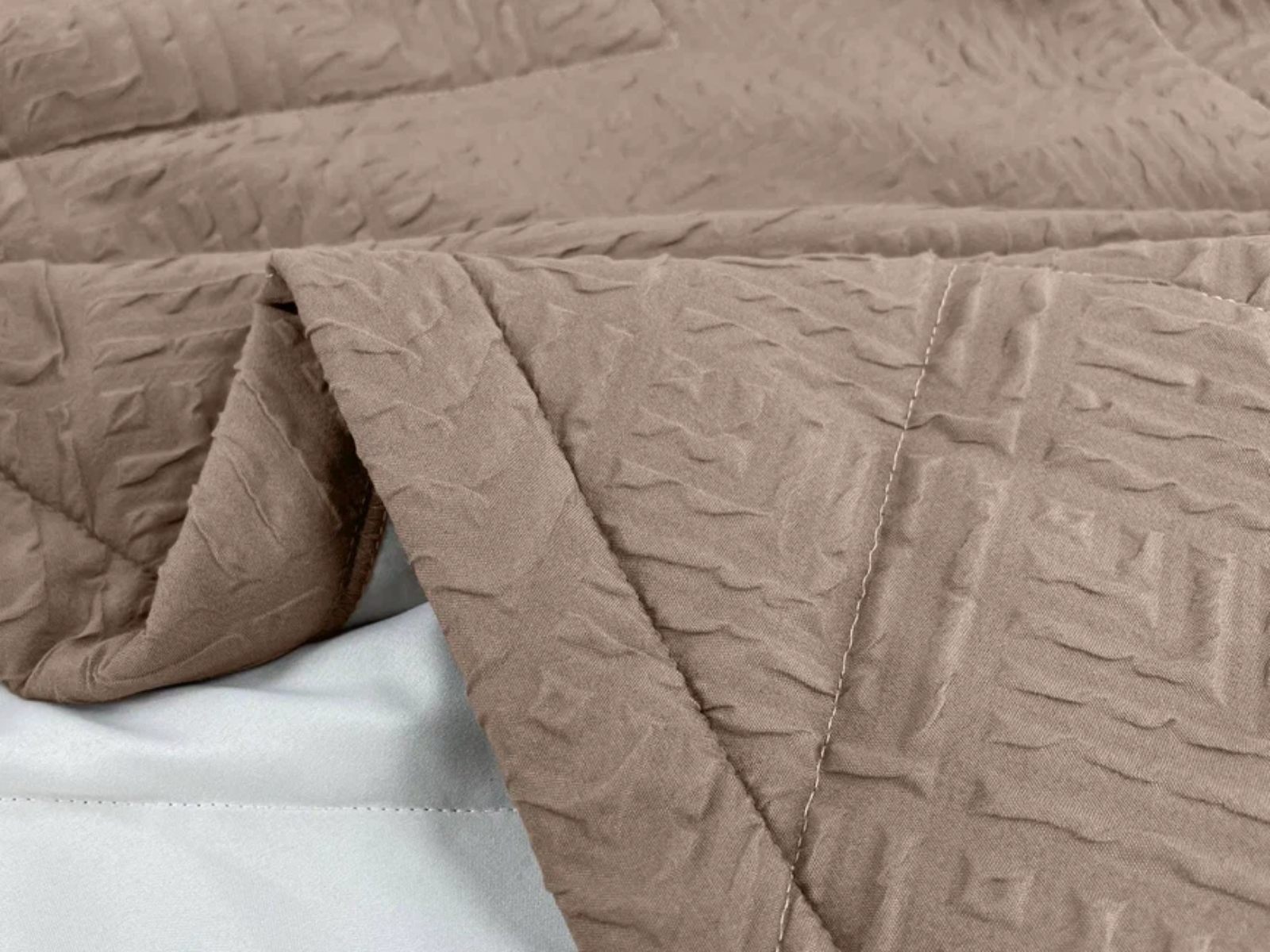 Покрывало Marenga создано для любителей оригинальных интерьерных решений. Объемная фактура ткани в сочетании с актуальным цветом бархатного таупа помогут создать неповторимый стиль в Вашей спальне. Сдержанный и одновременно запоминающийся дизайн покрывала украсит любой современный интерьер. Благодаря особой технологии производства, рельефный рисунок на ткани сохранится на протяжении всего срока использования изделия. Прочная ткань устойчива к деформациям, не пиллингуется, не оставляет затяжек. Оптимальное соотношение вискозы и полиэстера в составе наделяет покрывало такими важными свойствами как гипоаллергенность, антистатичность, износостойкость. Изделие не треубет особых условий ухода, легко стирается и быстро сохнет.