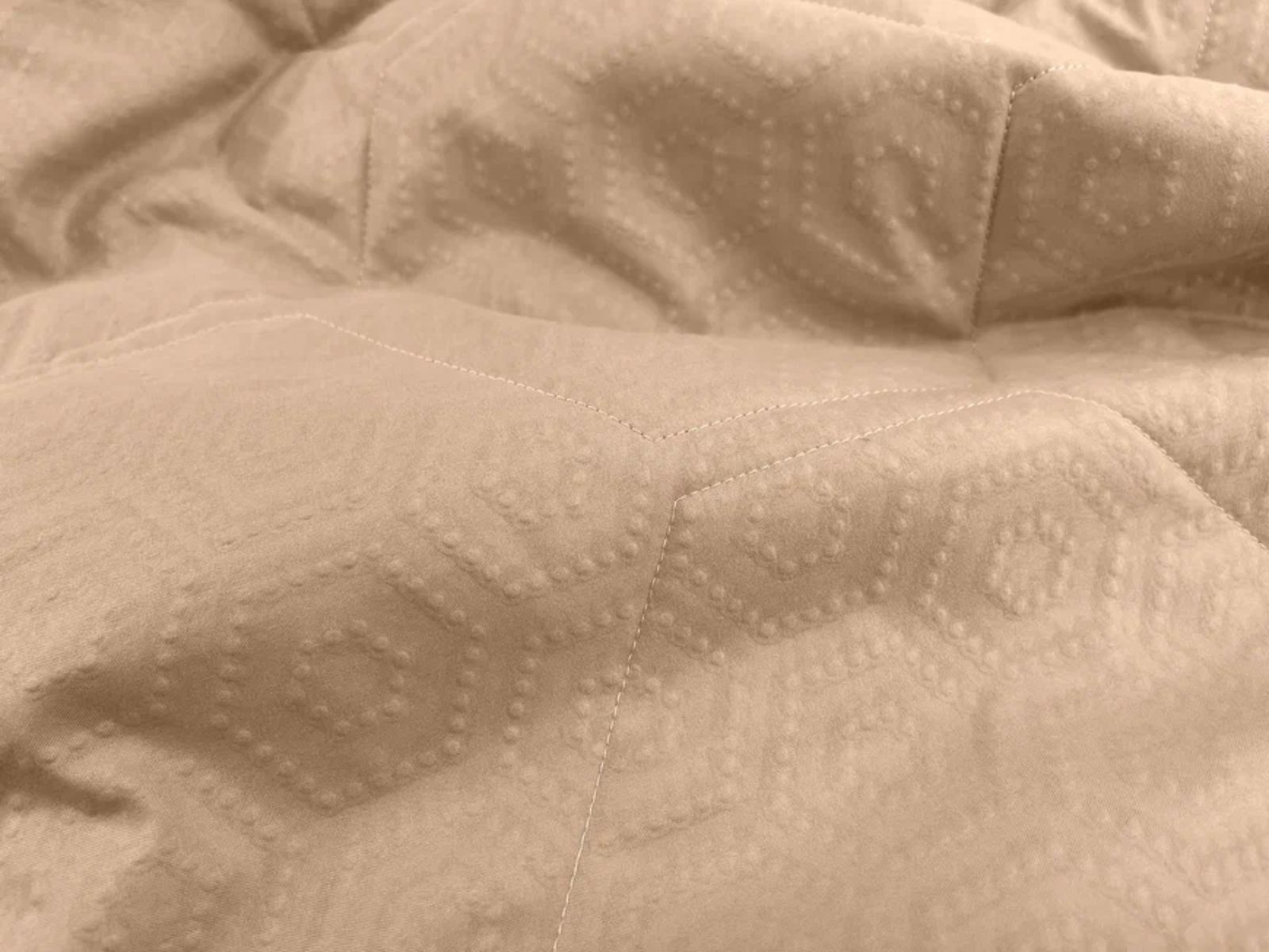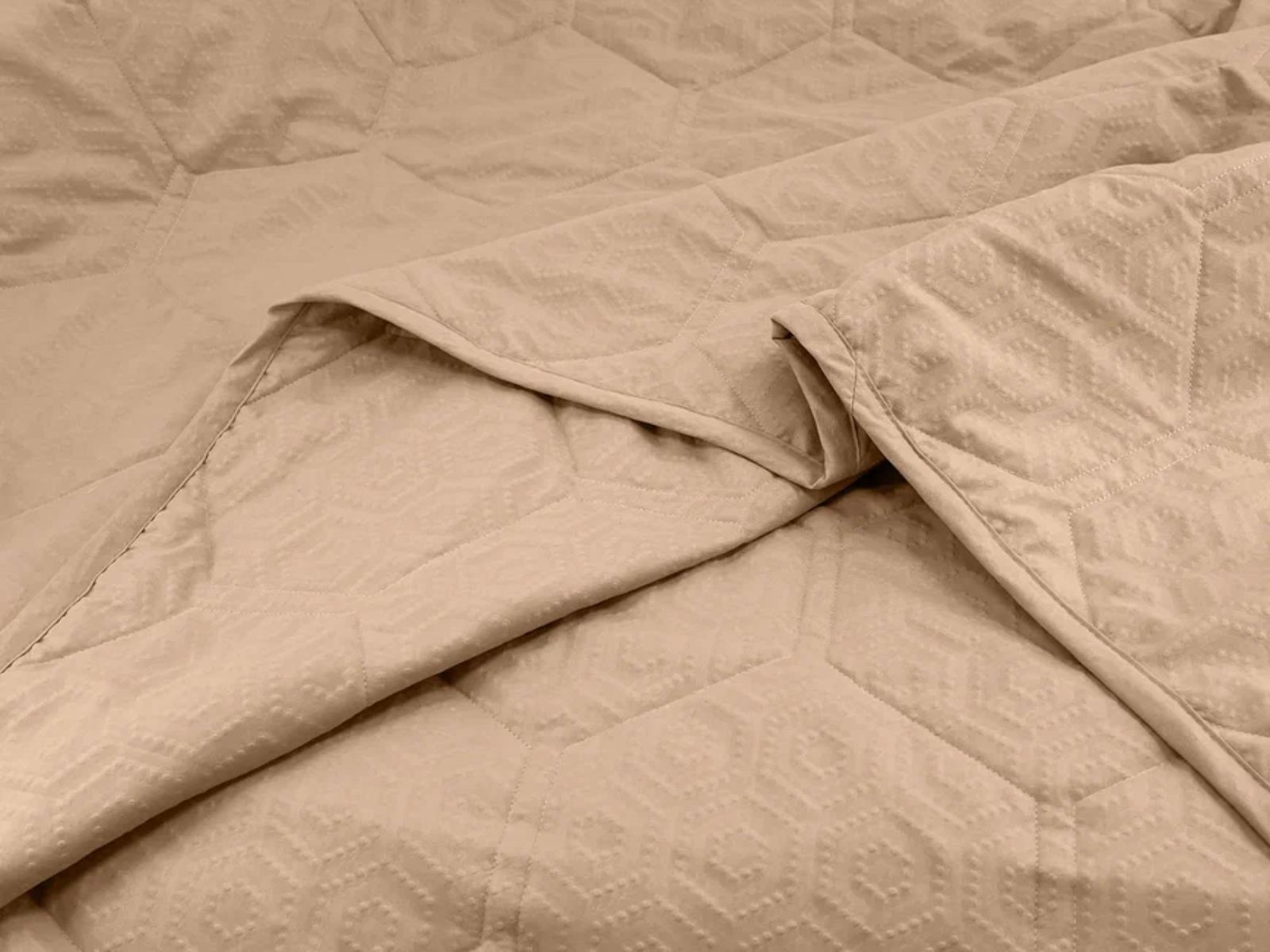 Двустороннее покрывало Relax - комфортное, практичное и стильное решение для вашей спальни. Изюминкой покрывала является оригинальная ткань с объемным фактурным дизайном, который создает оригинальный внешний вид и дарит приятные тактильные ощущения. В составе ткани органично сочетаются вискозные и полиэфирные нити, благодаря чему изделие имеет лучшие потребительские свойства, такие как легкость, мягкость, антистатичность, гипоаллергенность и износостойкость. Покрывало украшено модной ниточной стежкой "Соты", которая повторяет геометрию фактурного дизайна. Изделие прекрасно переносит регулярные стирки и быстро сохнет. Современная технология производства ткани гарантирует сохранение рельефа рисунка и стойкость цвета. Отсутствие пиллинга и устойчивость к образованию зацепок позволяют использовать покрывало и в качестве накидки на диван.