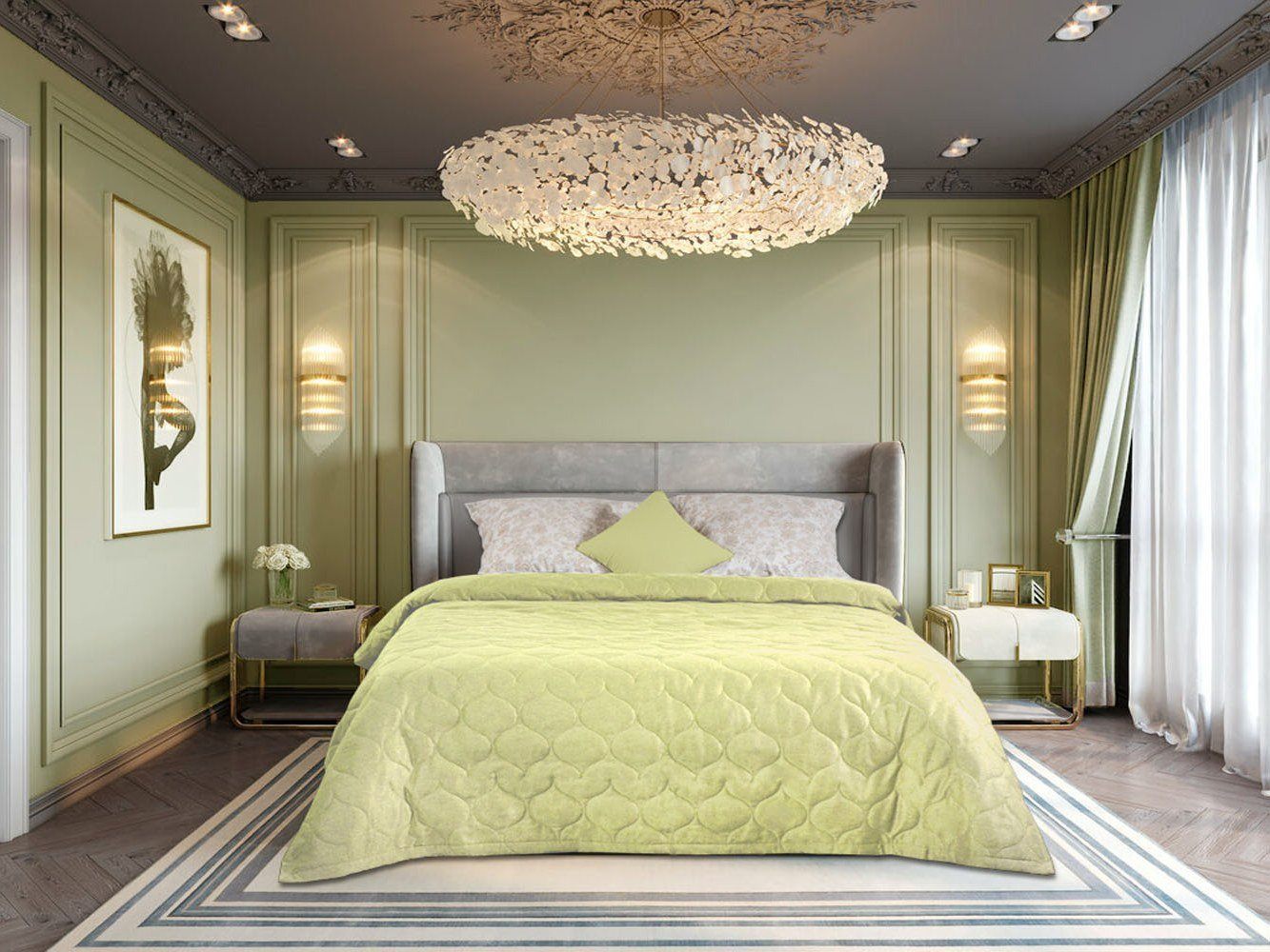 Стильное, нежное и утонченное покрывало Renard в оливковом цвете. Этот цвет в интерьере считается универсальным и сочетается с нейтральными оттенками: бежевым, белым и коричневым. Он освежает и успокаивает, как все природные цветовые гаммы. Дополняет покрывало простая, но при этом очень изящная классическая ниточная стежка в виде ажурных луковиц.