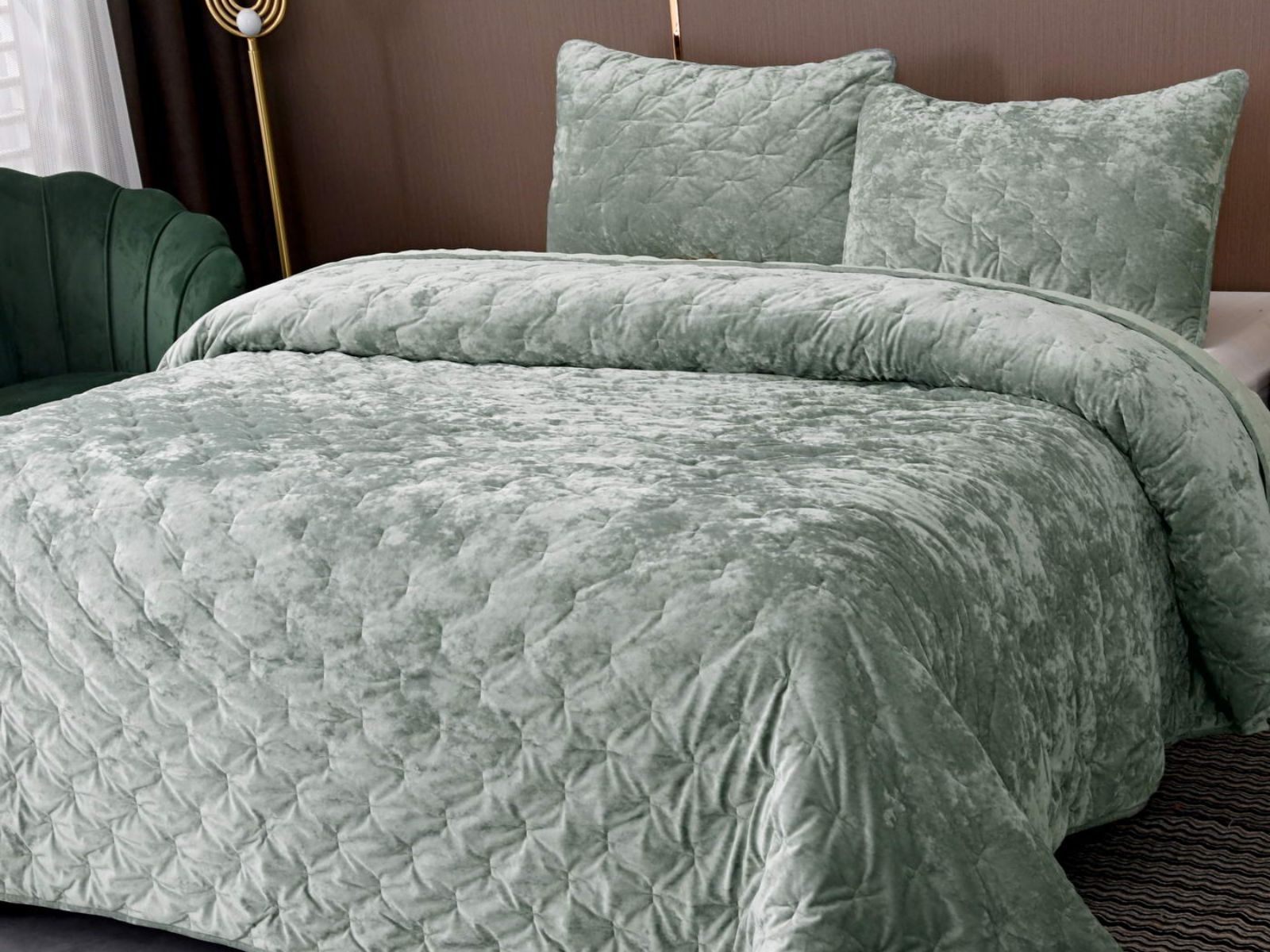Цветовая гамма разнообразна и включает одиннадцать благородных оттенков: бежевый, горчичный, изумруд, капучино, бордо, молоко, пепел роза, светло серый, стоун, темно синий, терракот. В комплекте с покрывалом идет наволочка из такой же ткани.