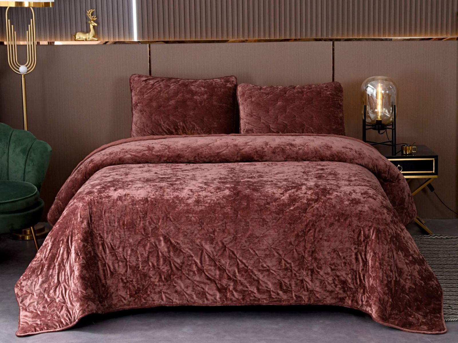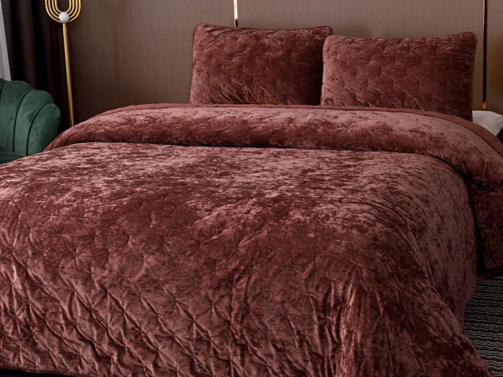 Бархатное покрывало Алира выглядит роскошно и элегантно, оно придаст спальне стильный и изысканный вид. Бархатную ткань начали изготавливать еще в Средние века, её использовали в оформлении дворцов и изготавливали плащи и головные уборы для знати. Теперь и вы можете прикоснуться к этой роскоши! Бархатная текстура приятная на ощупь, а из-за особого плетения ткани, игра света на ней выглядит благородно. Поэтому покрывало Алира создаст необычайно уютную атмосферу в вашей спальне.