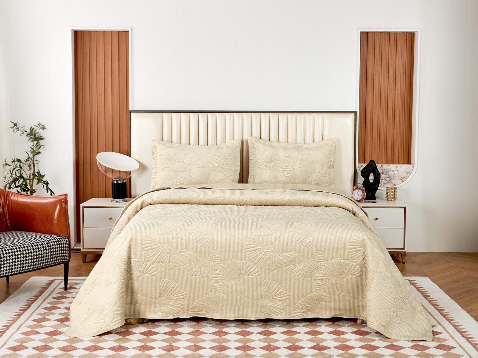 В комплект входят покрывало и одна либо две наволочки (50х70 см) из аналогичного материала в зависимости от размера. Каждый набор заботливо упакован в фирменную подарочную сумку.Пошив покрывала с кантом, наволочки с ушками 5 см. Наволочки на запахе. Вышивка на всем изделии.