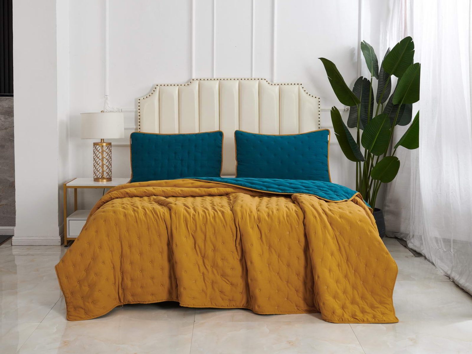 Двусторонние стеганные покрывала Броуди легкие и прочные. В комплект входят покрывало и одна либо две наволочки (50х70 см) из аналогичного материала в зависимости от размера. При желании покрывало можно использовать как легкое одеяло.